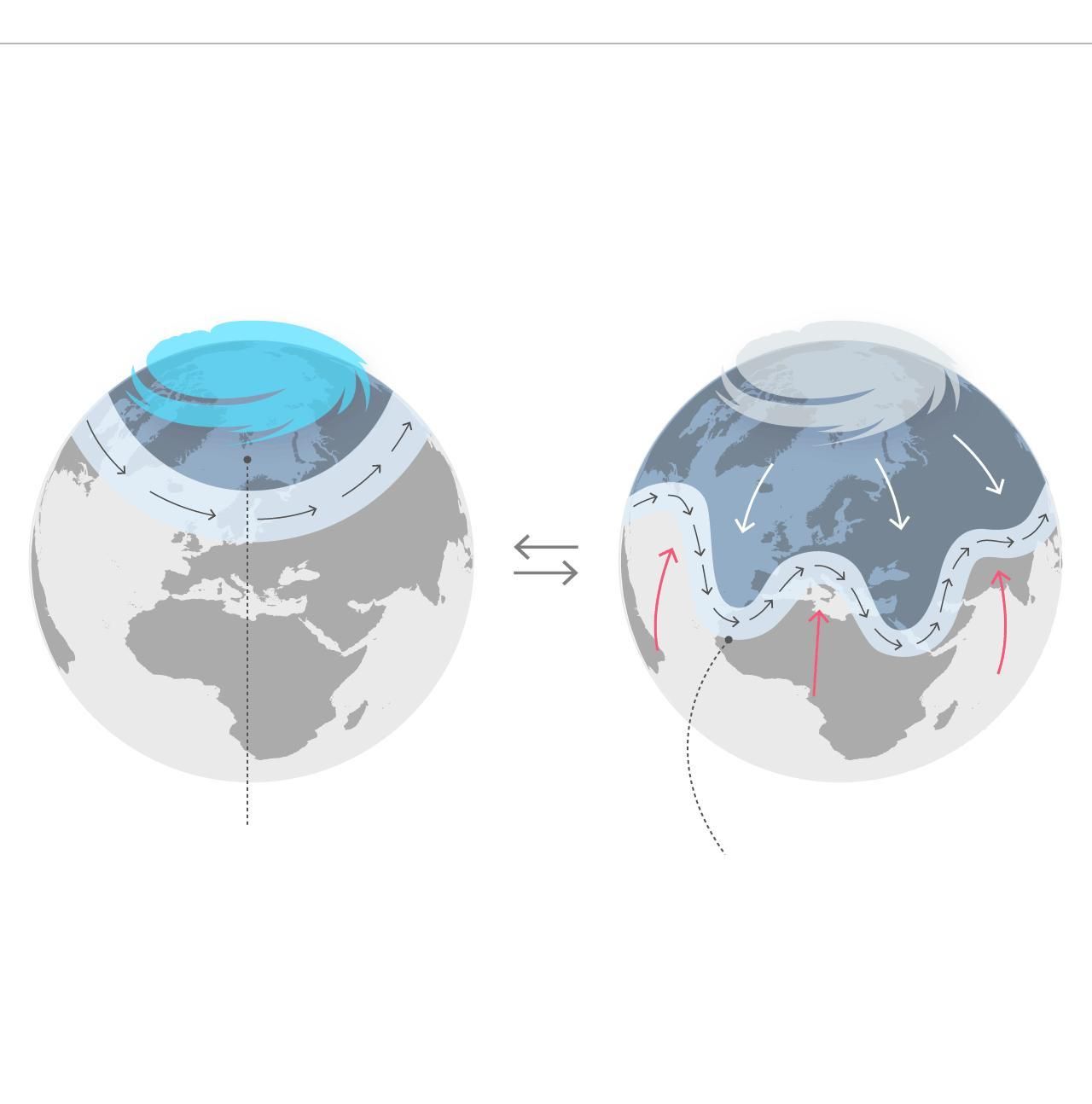Los meteorólogos atribuyen el fenómeno del tren de borrascas que llegan a la península por el sur y el oeste a un debilitamiento de la «corriente en chorro» por el calentamiento del Ártico, como se muestra en el gráfico que abre esta entrada, tomado del diario.es. Supongo que los científicos estarán estudiando en profundidad este fenómeno; las borrascas atlánticas llegan cargadas de humedad desde un Caribe sobrecalentado.