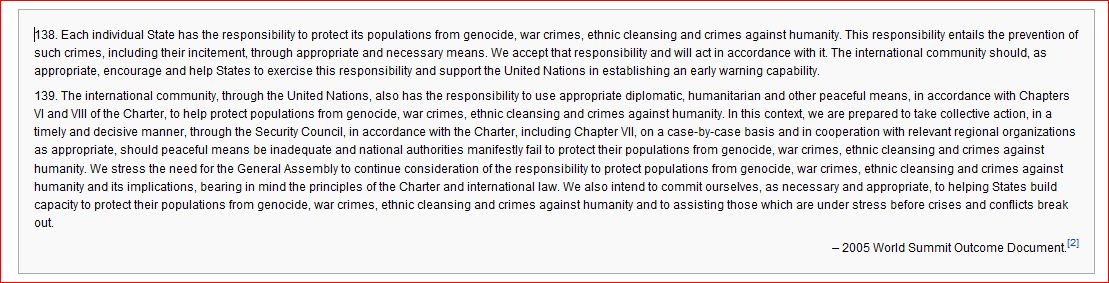 El relato. Las protestas en Libia forman parte de la «revolución árabe». Gadafi las ha reprimido cometiendo crímenes contra la humanidad. Gadafi ataca a la población civil y puede cometer un genocidio. La intervención es legal y legítima. Es una intervención humanitaria, no una guerra porque no se pretende derrocar a Gadafi, sino proteger a los civiles y abrir pasillos humantarios.
