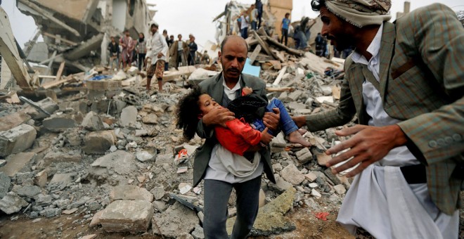 Bombardeo saudí sobre una ciudad de Yemen, una de la más terribles guerras olvidadas