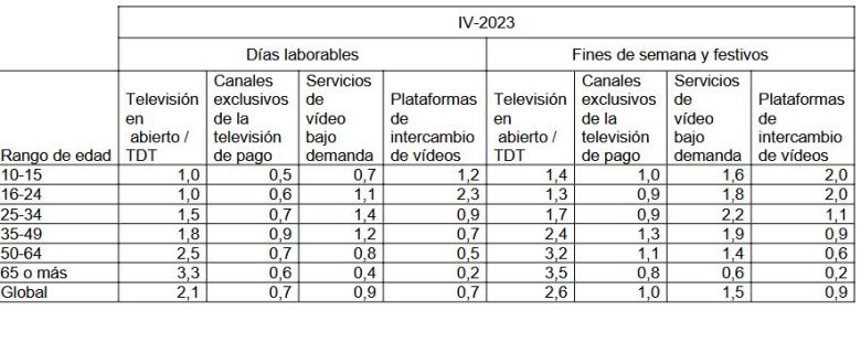También se dice que los cambios en la TDT no tienen importancia porque todo el mundo prefiere las plataformas de pago a la televisión en abierto gratuita. Eso depende mucho de la franja de edad, pero ni siquiera es así en el caso de los más jóvenes, como se ve en el cuadro obtenido en el informe de la CNMC copiado aquí. Por cierto, solo RTVE play tiene una reducida oferta en UHD (ciudades españolas patrimonio de la Humanidad)