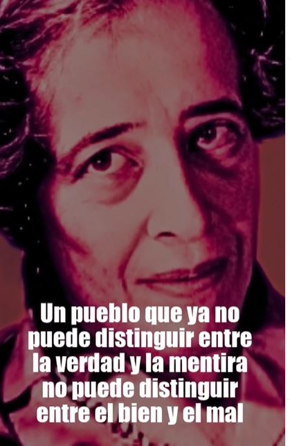 Esta idea enlaza con sus ideas de cómo una sociedad democrática puede convertirse en una sociedad autoritaria a través de la mentira. El que miente muchas veces no busca que creamos su mentira (Trump diciendo que los inmigrantes se comían las mascotas en Springfield ) sino que no creamos en nada. Hace un siglo, Arendt describió técnicas semejantes a la saturación de mierda de la extrema derecha en las redes sociales. En este gif de Instagram están resumidas sus ideas (aquí tres capturas)