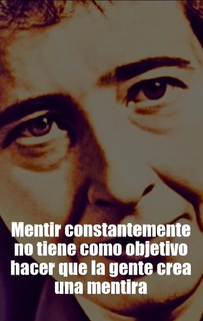 Esta idea enlaza con sus ideas de cómo una sociedad democrática puede convertirse en una sociedad autoritaria a través de la mentira. El que miente muchas veces no busca que creamos su mentira (Trump diciendo que los inmigrantes se comían las mascotas en Springfield ) sino que no creamos en nada. Hace un siglo, Arendt describió técnicas semejantes a la saturación de mierda de la extrema derecha en las redes sociales. En este gif de Instagram están resumidas sus ideas (aquí tres capturas)